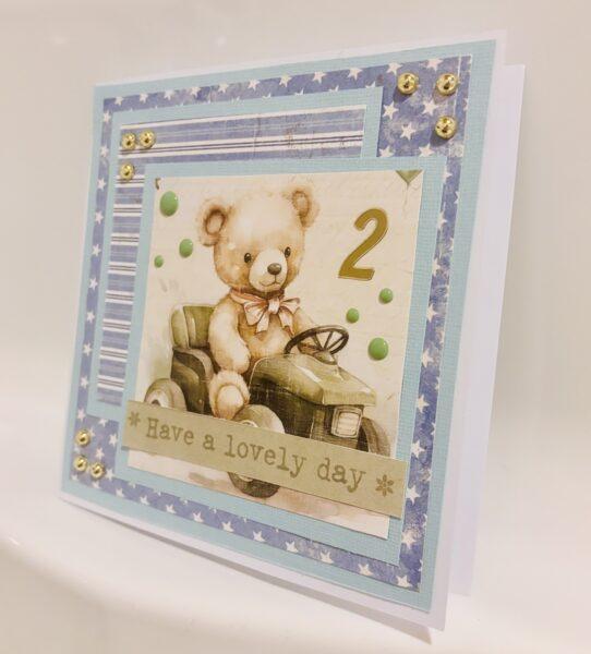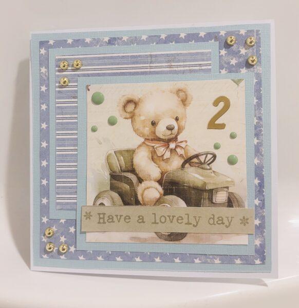 Idag är jag tillbaka med ännu ett litet kort, och denna gång tänkte jag bryta av i allt höstpyssel med ett barnkort till en pojke som fyller 2 år.