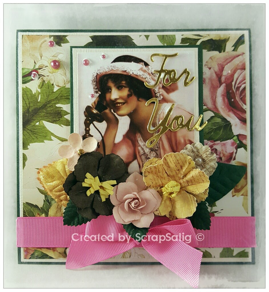 Vintage är ett säkert kort när du vill ge någon lite extra omtanke. Det här kortet är tänkt till morsdag och det läckra designarket kommer från Kaisercraft. Vintagebilden är en utskrift från nätet och tygbandet följde med på köpet av strumpor hos H&M (jag älskar återbruk).