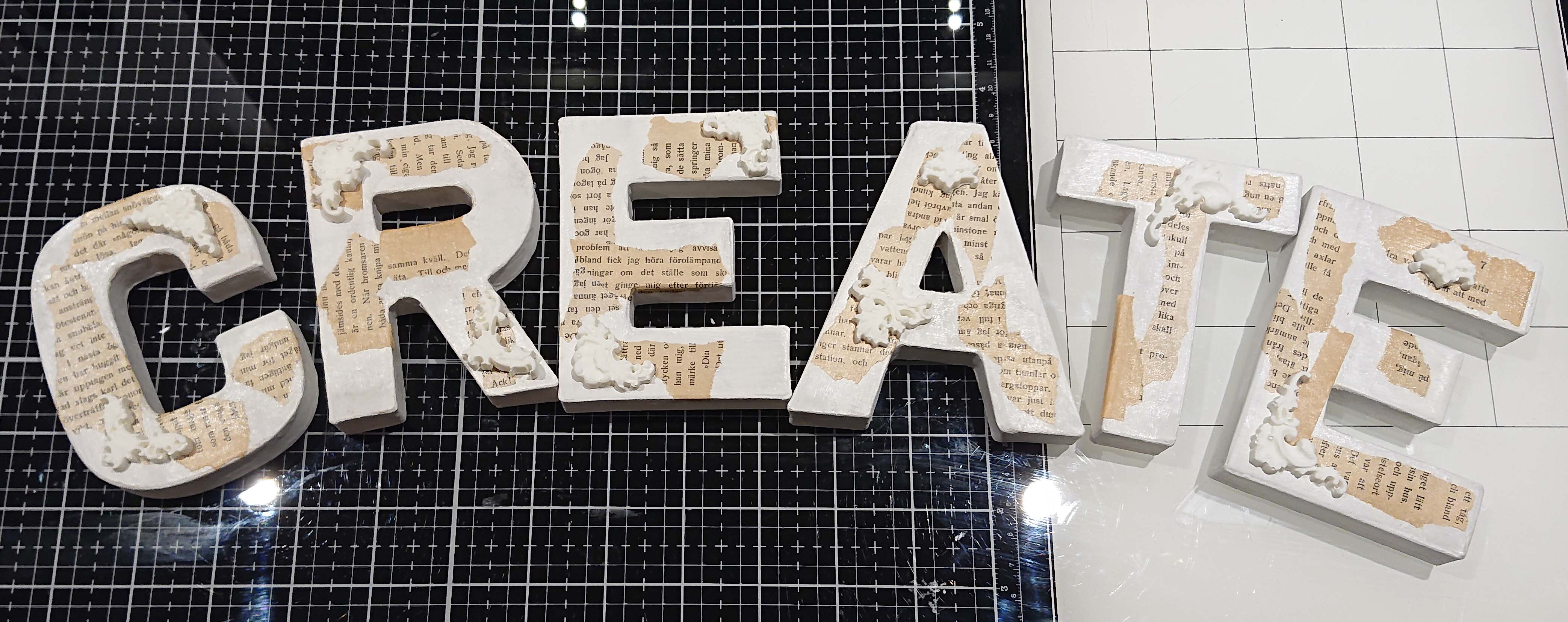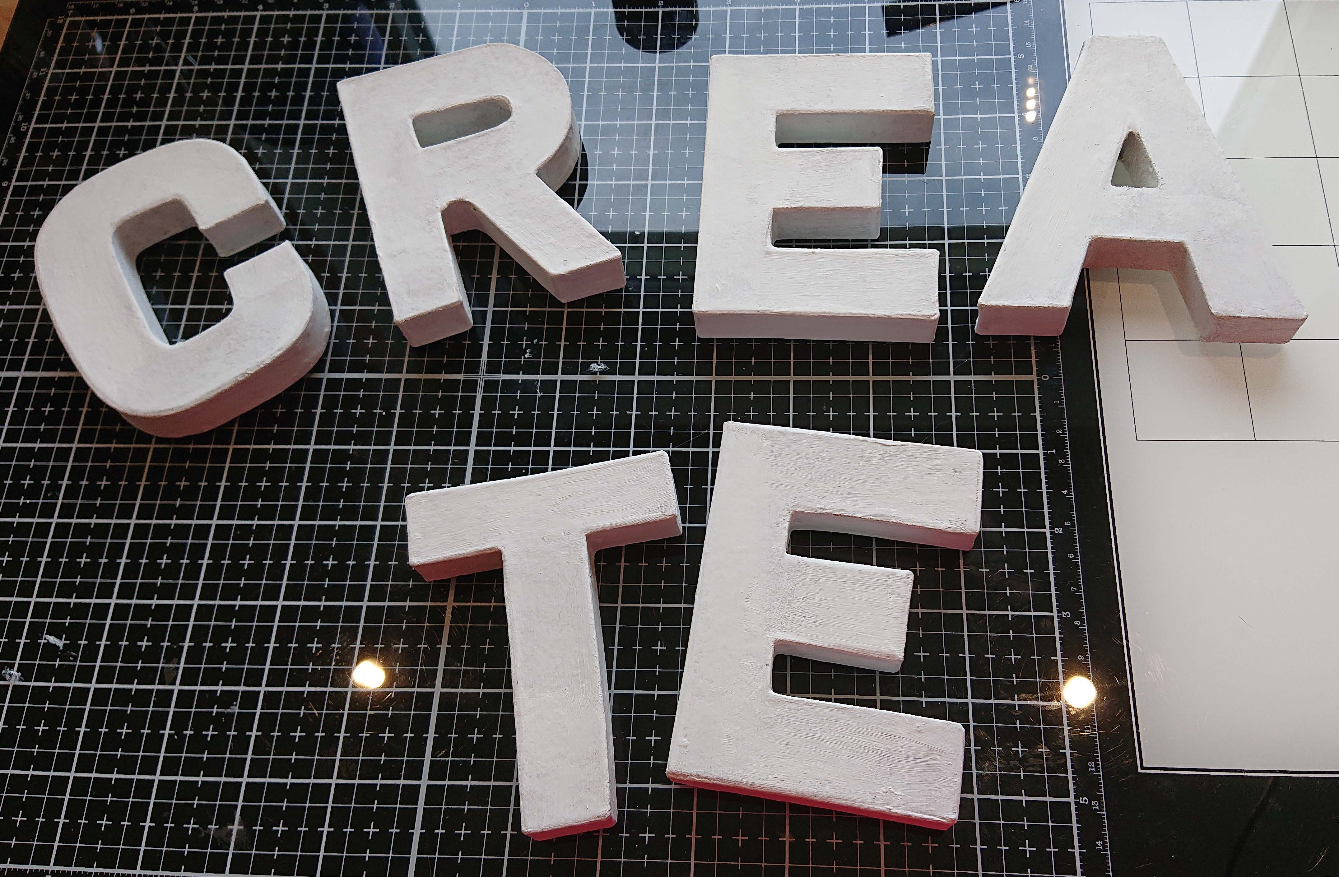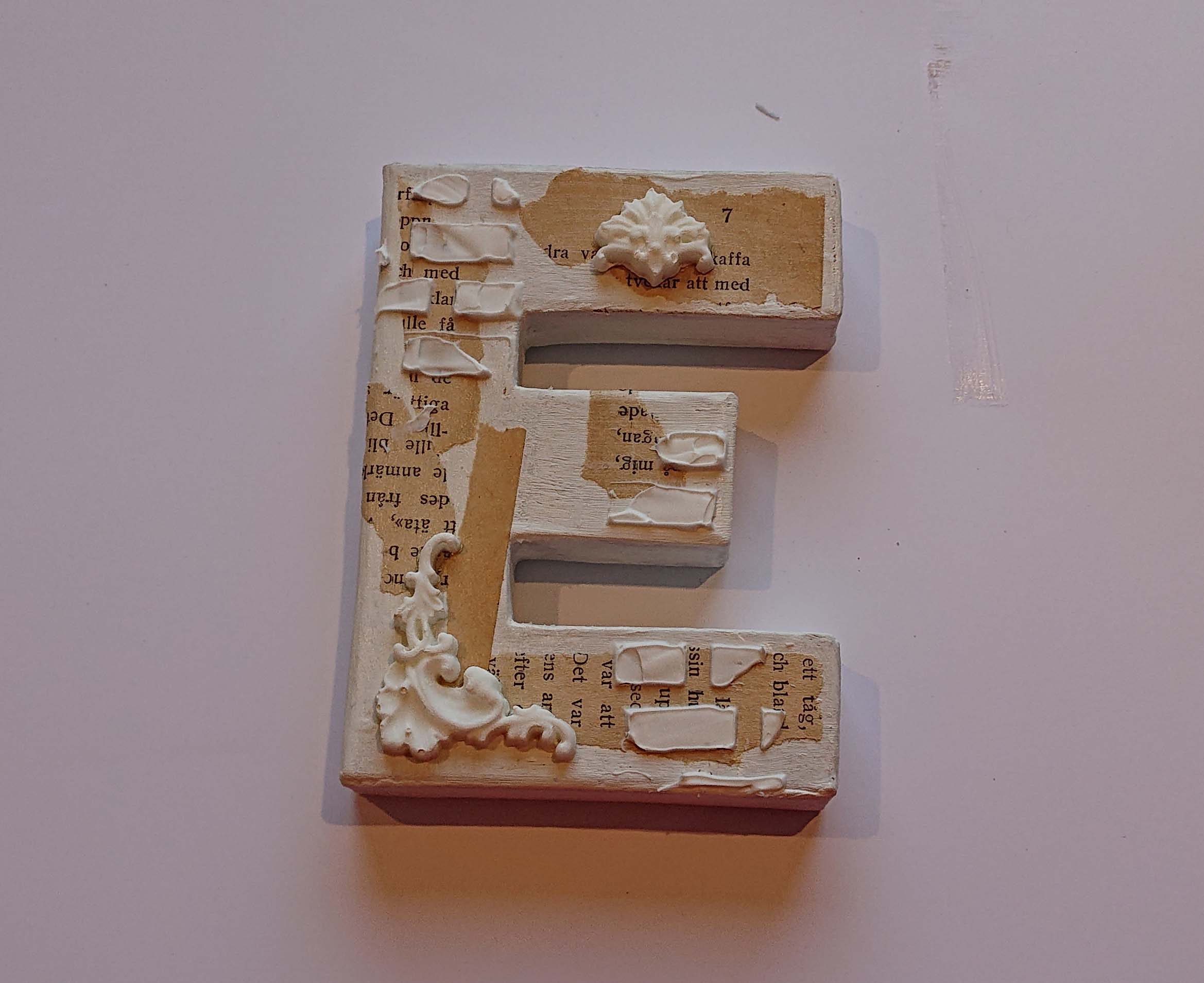 Jag började med att måla bokstäverna vita med gesso.