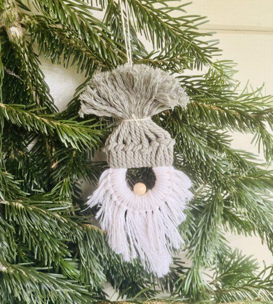 Då var jag tillbaka med ännu ett litet pysseltips! Den här gången har jag gjort en söt tomte att hänga i granen, gjord av makramégarn och en träring.