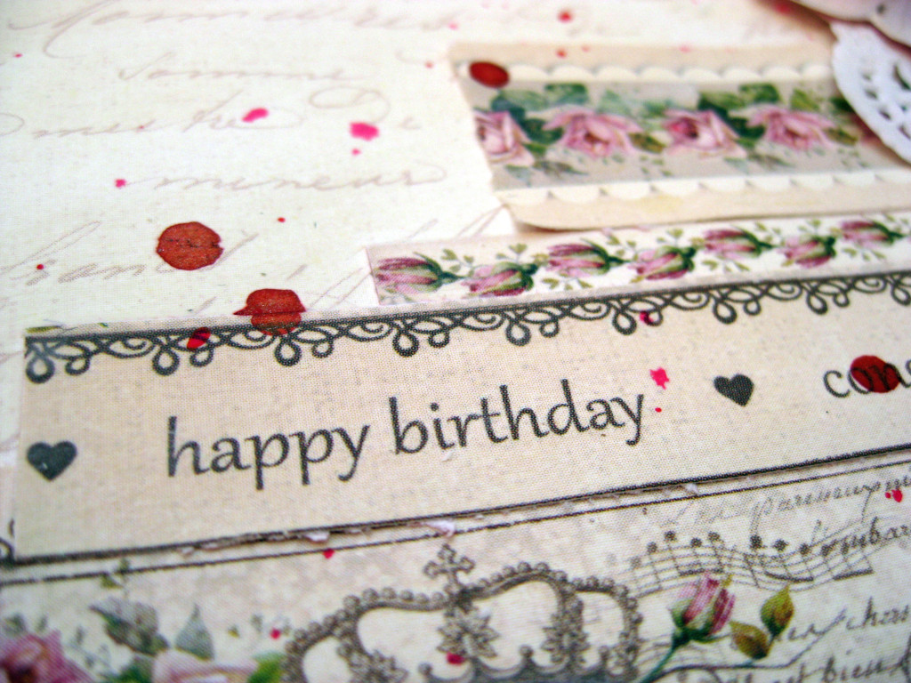 Det finns ett så passande papper i butiken som jag använt, både med prinsess-tema och födelsedag på en gång. Dessutom i bårder, så man kan få många olika stripes i samma papper! Det kommer från Pion Design och heter passande nog My precious daughter.
