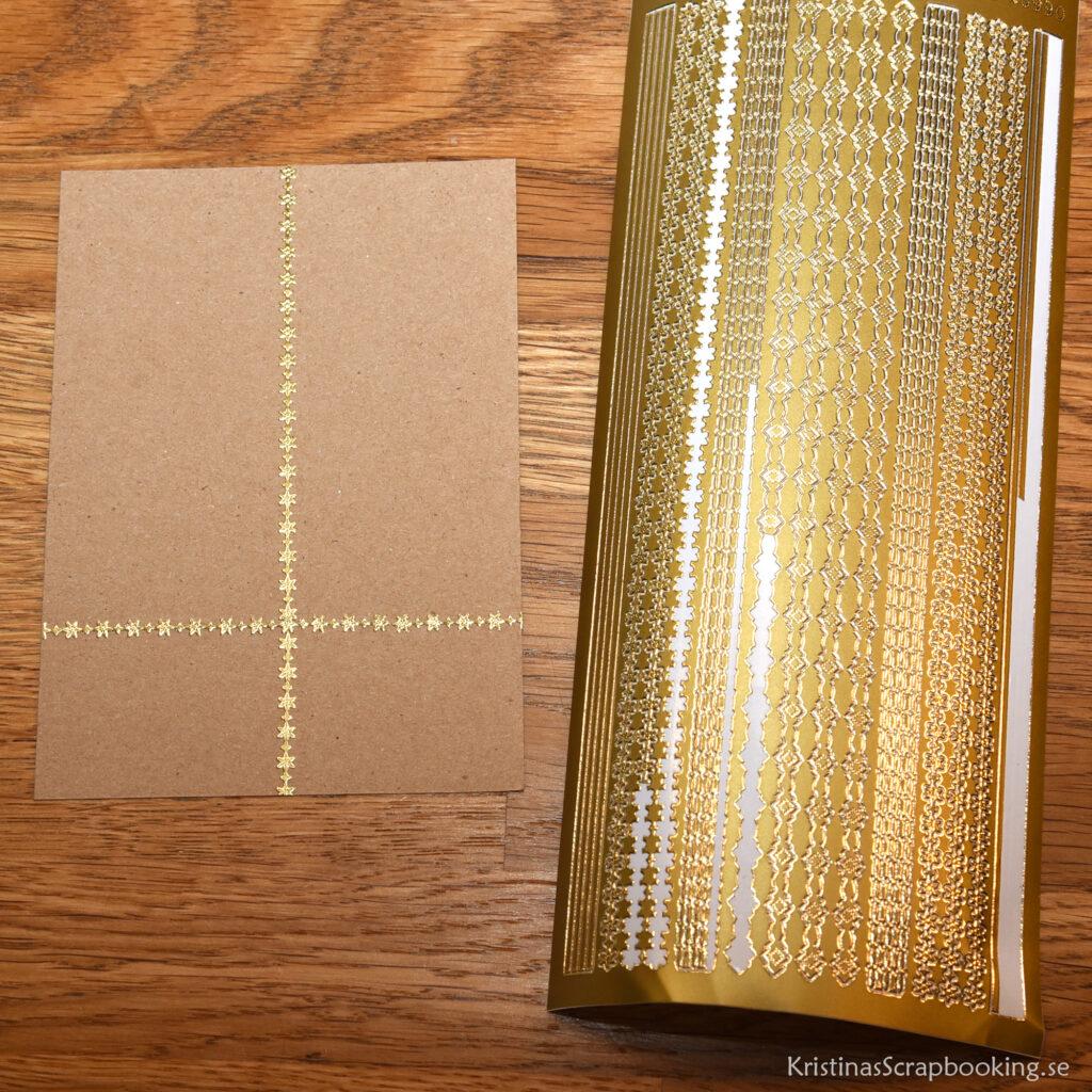 2. Gör ett kors mitt på arket med självhäftande guldbårder, så som bilden visar.