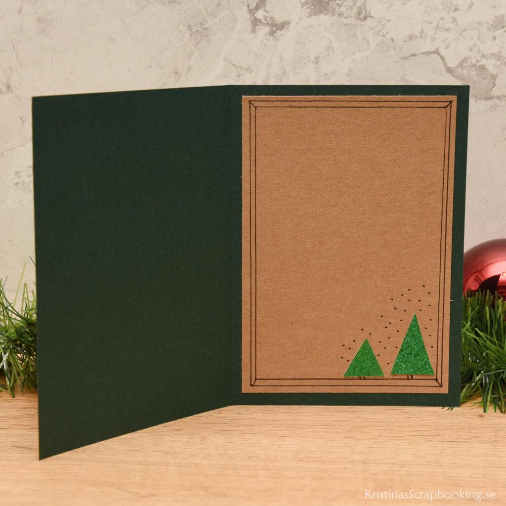 7. Insidan. Limma fast det ena kvist-arket på insidan av kortet och dekorera efter egen fantasi. Skriv en personlig hälsning eller använd julstämplar.