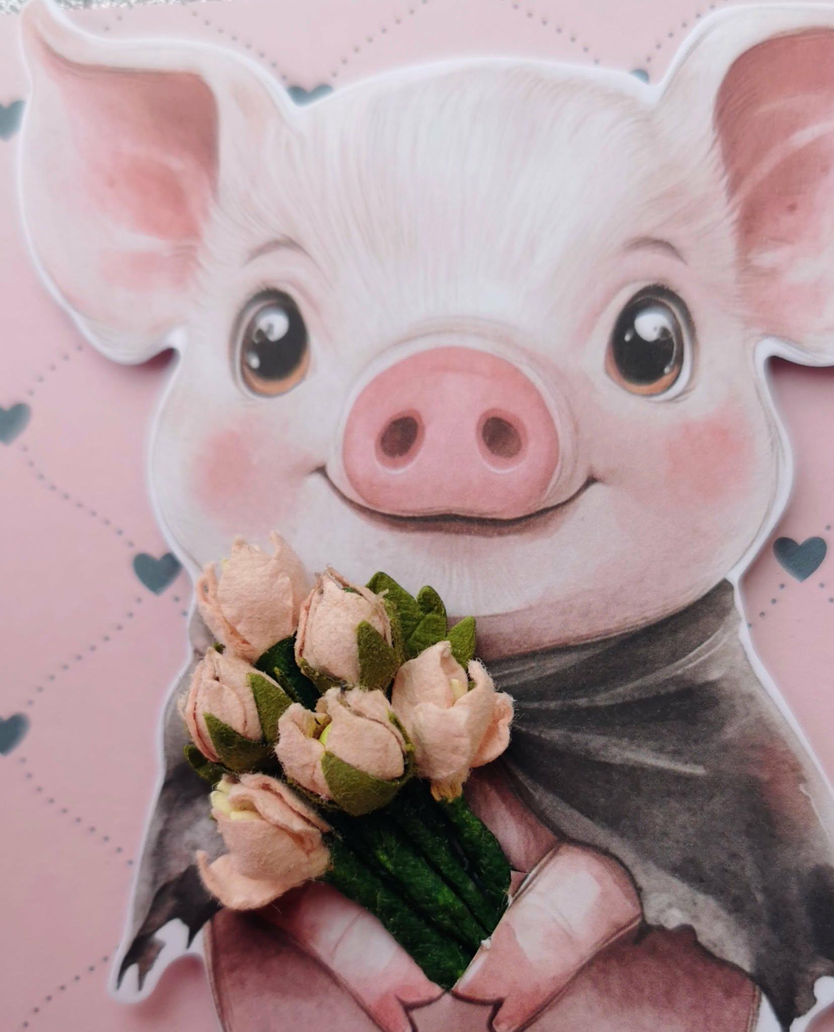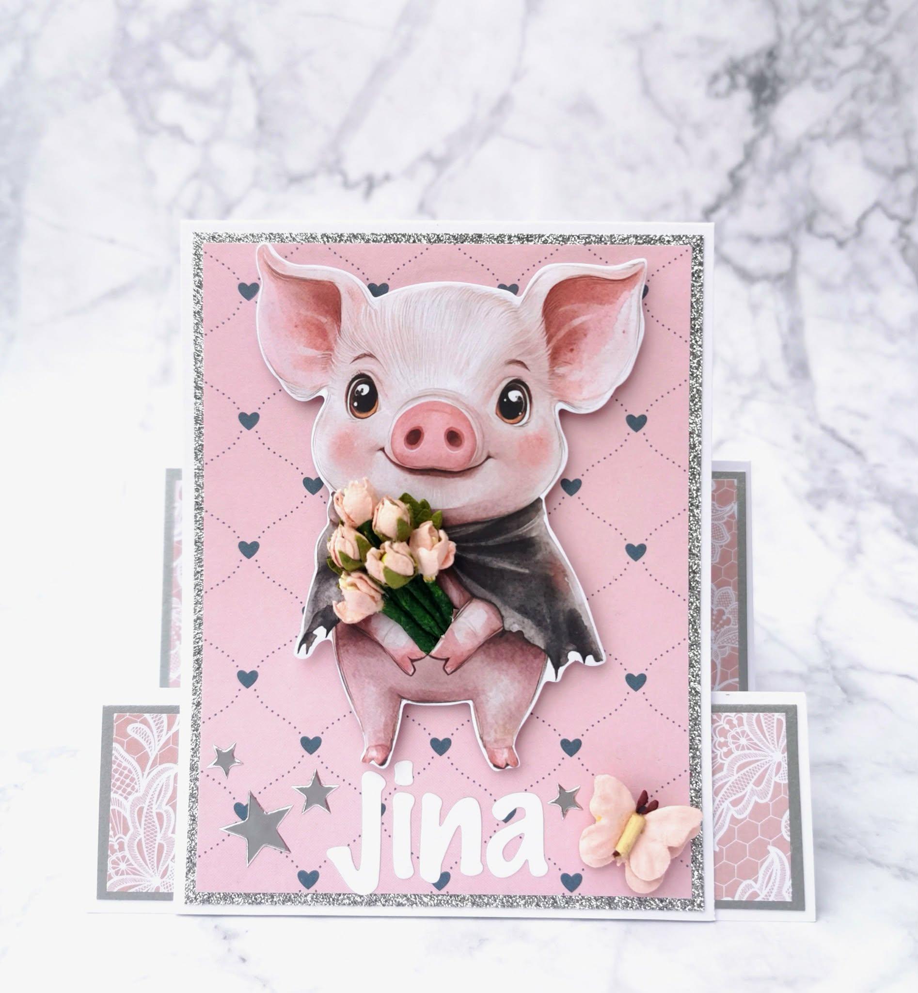Kortets stjärna är den söta grisen i rejäl storlek från Studio Light / Die cuts – Fall in love.