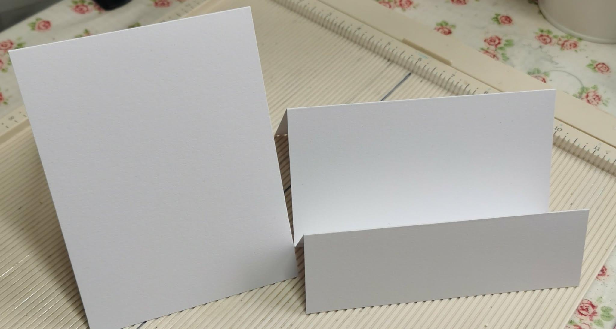 Vik enligt bilden och limma helt sonika på den högre kortbasen på mitten av den lägre, efter att du klätt med önskat designpapper.