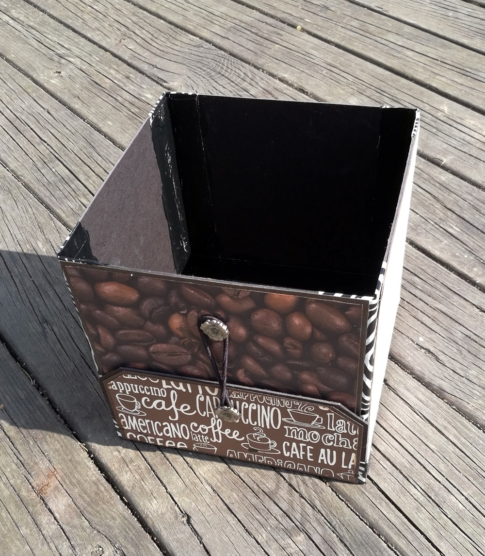 I lördags var jag på scrapträff, vi är ett gäng som träffas en gång i månaden. Tyvärr kan jag inte vara med så ofta som jag skulle vilja eftersom jag jobbar rätt många helger. En av tjejerna hade en smart liten låda att lägga skräp i. Den var hopfällbar och därför lätt att ta med sig. Jag bestämde mig för att göra en liknande och så här blev det: