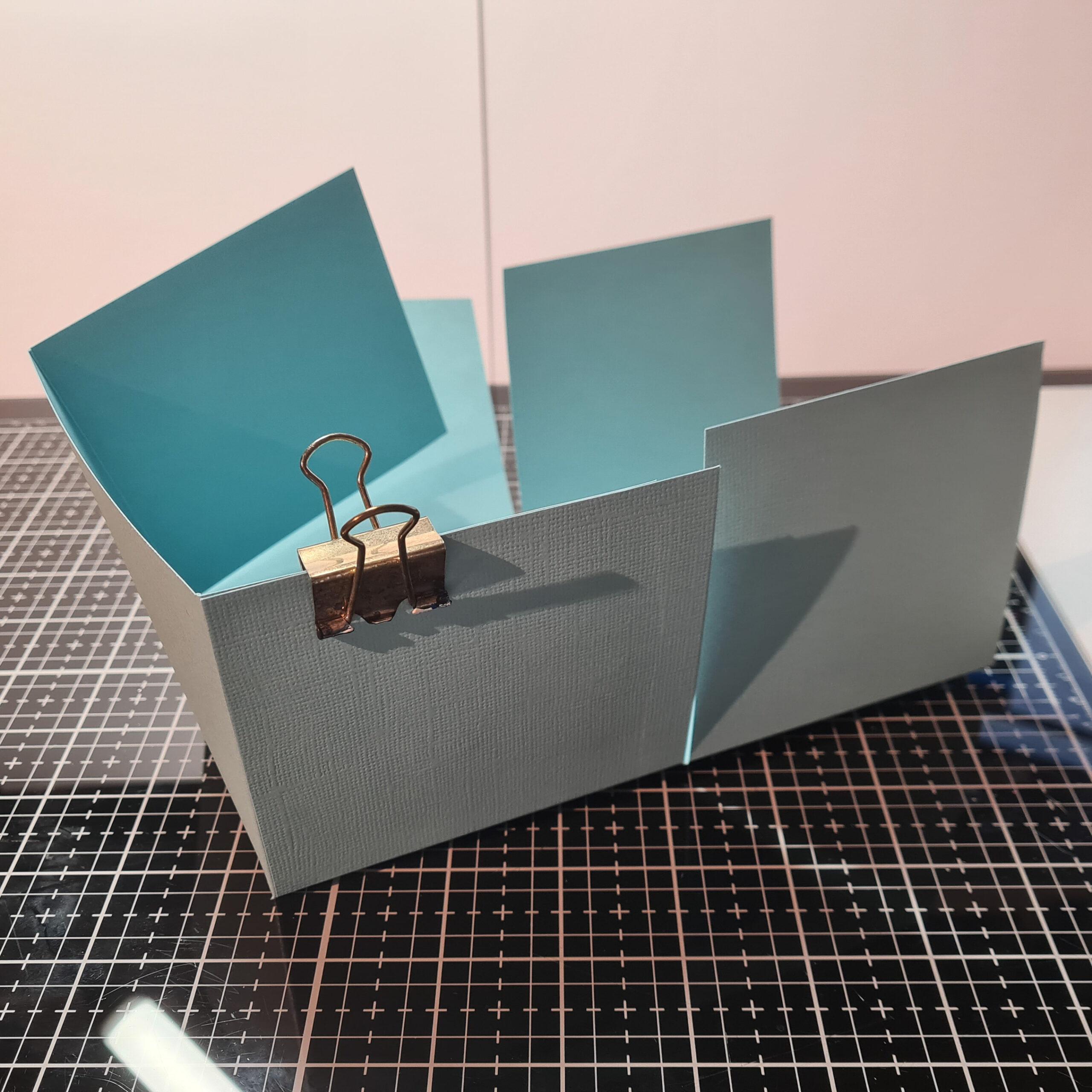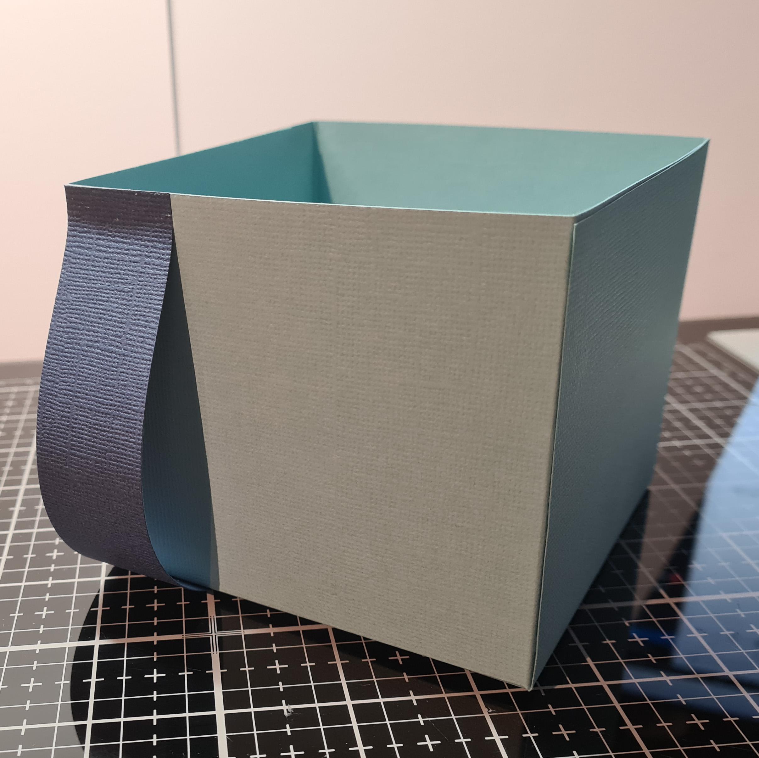 Därefter klipper du upp till biglinjerna som bilden visar. Jag brukar alltid klippa av en liten extra bit på hörnen då göms hörnen lättare bakom sidostyckena när man viker in dem.