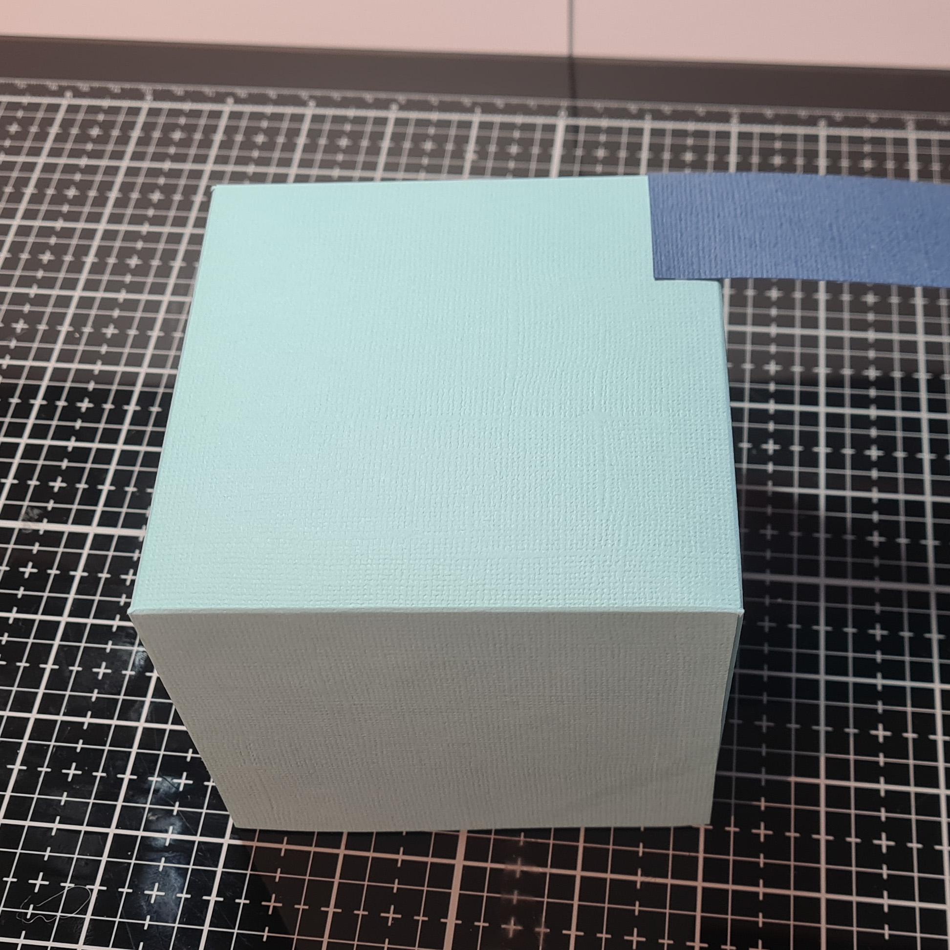 Till sidorna har jag använt cardstock bitar som är 4 ½ x 1 1/8 inch och limmat på en bit mönsterpapper som är 4 ½ x 7/8 inch. Jag limmade fast dem under botten.