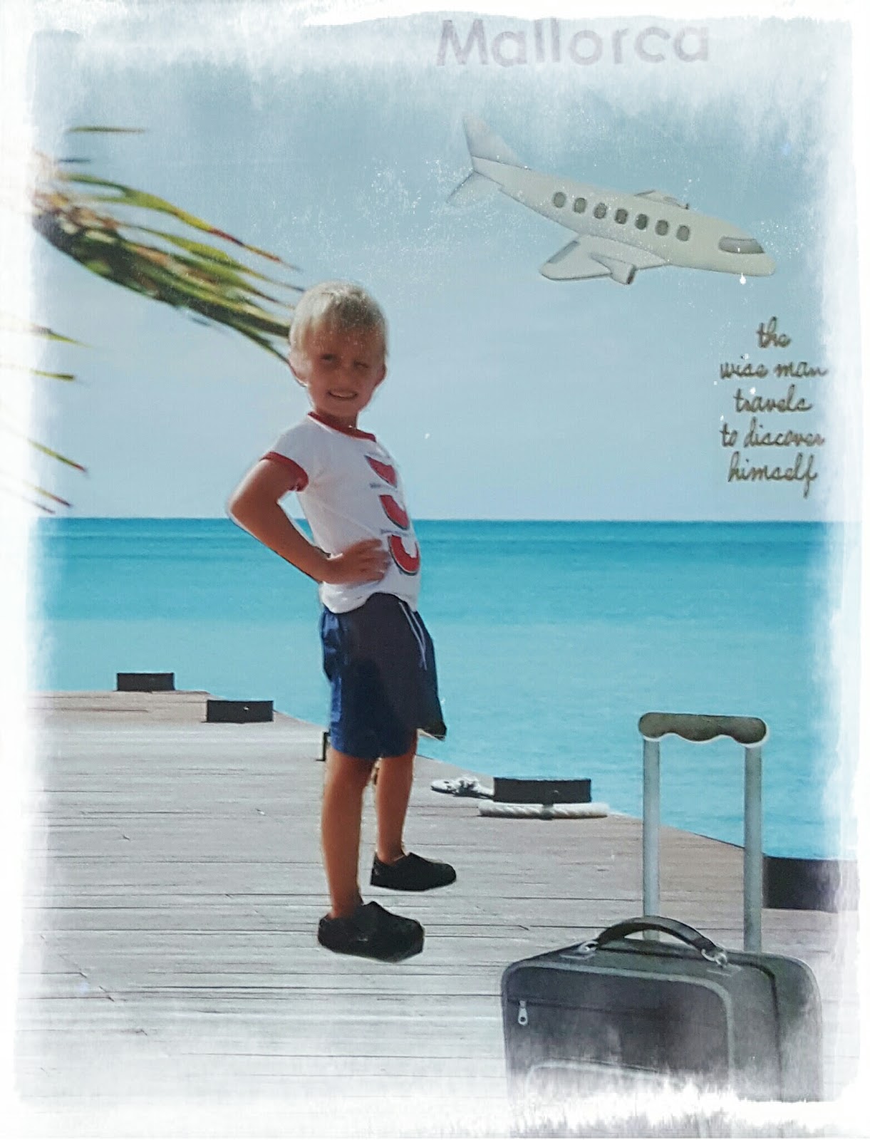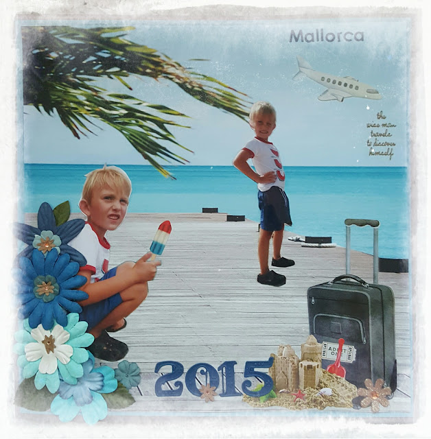 Jag gillar att skapa layouter där jag skurit ur hela människor och sedan laborera fram en hel scen. Här har jag gått ”all in” på semestertema och använt stickers för att skapa rätt stämning.