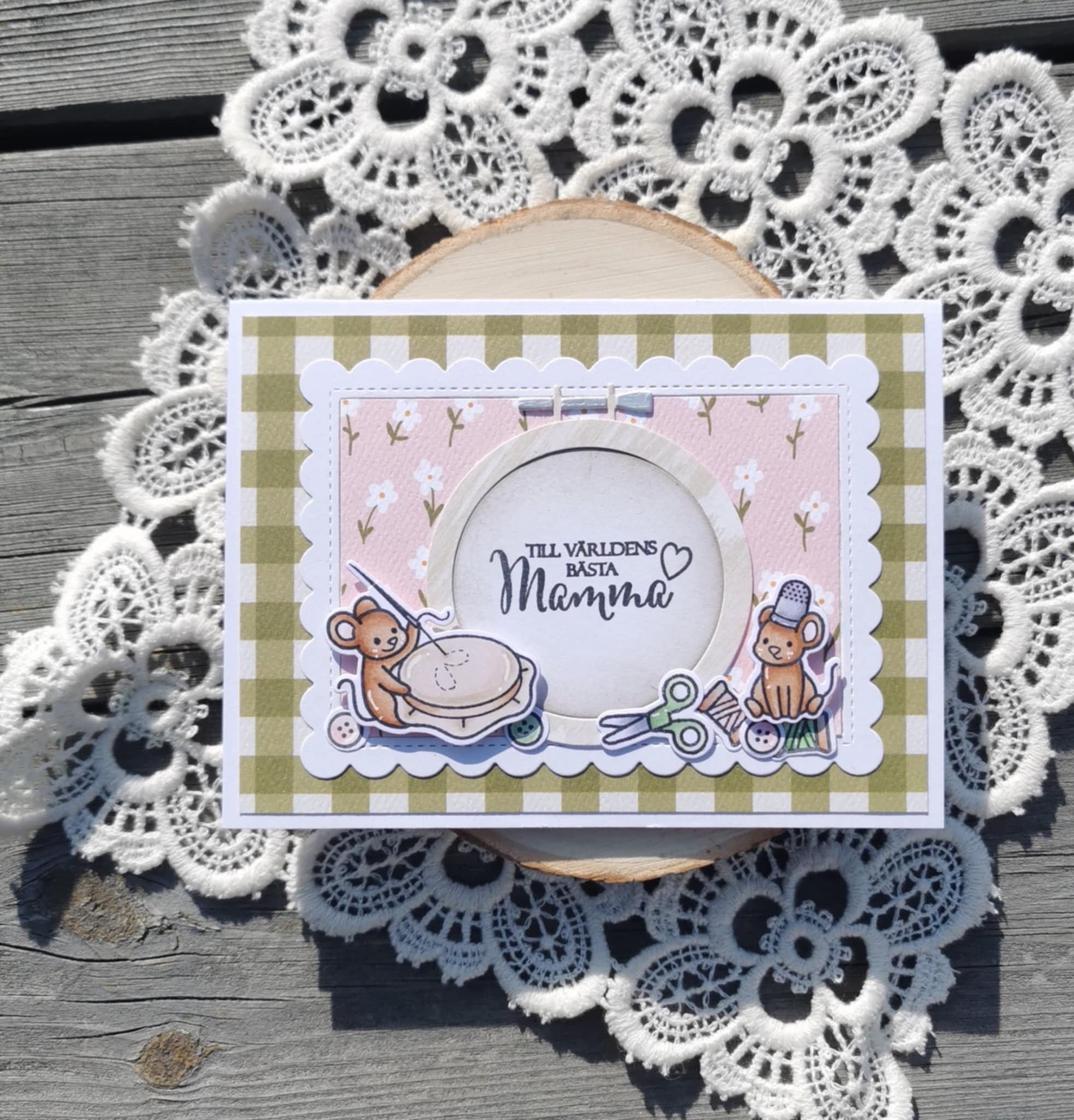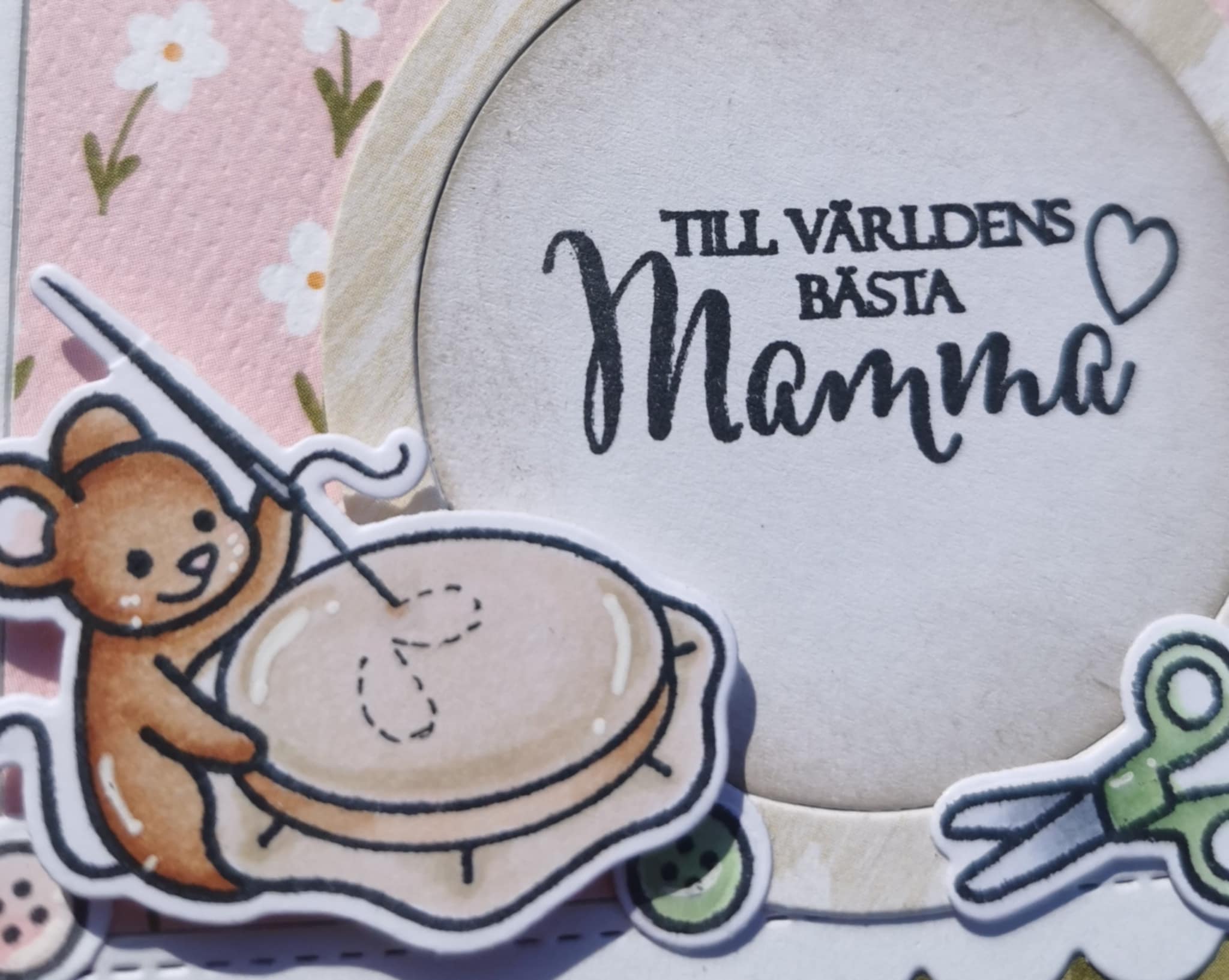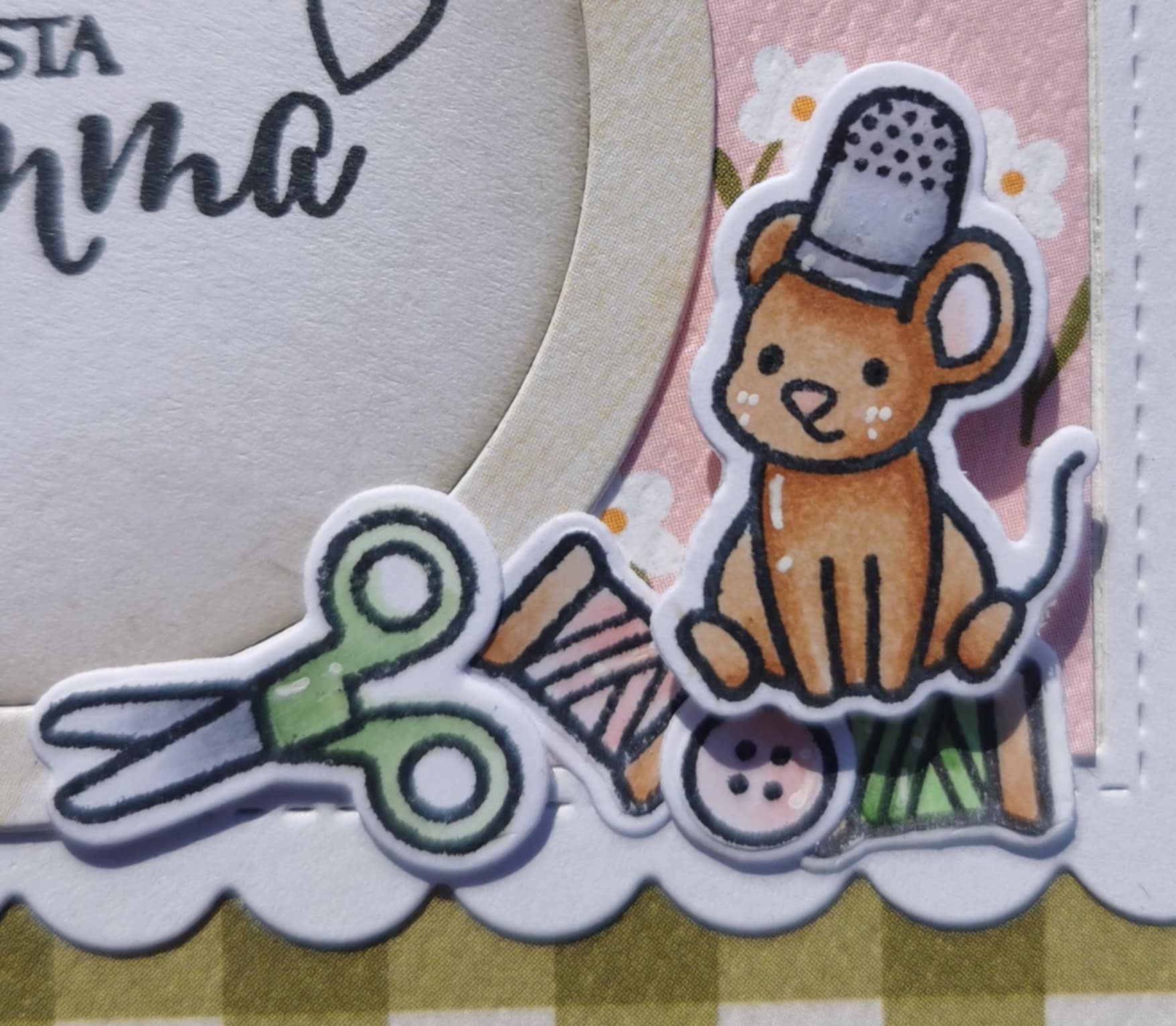 I år får mor ett kort gjort med underbara små möss-stämplar från Lawn Fawn