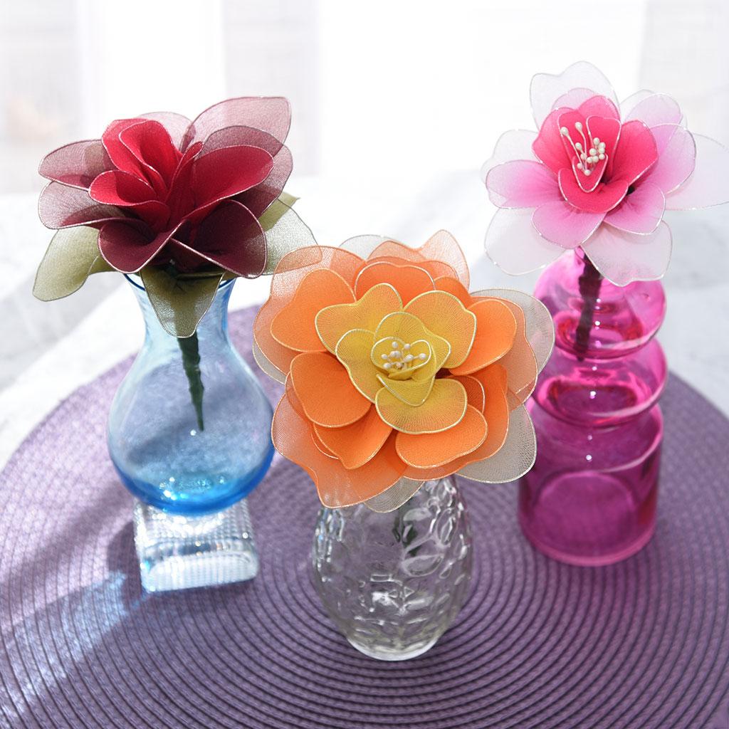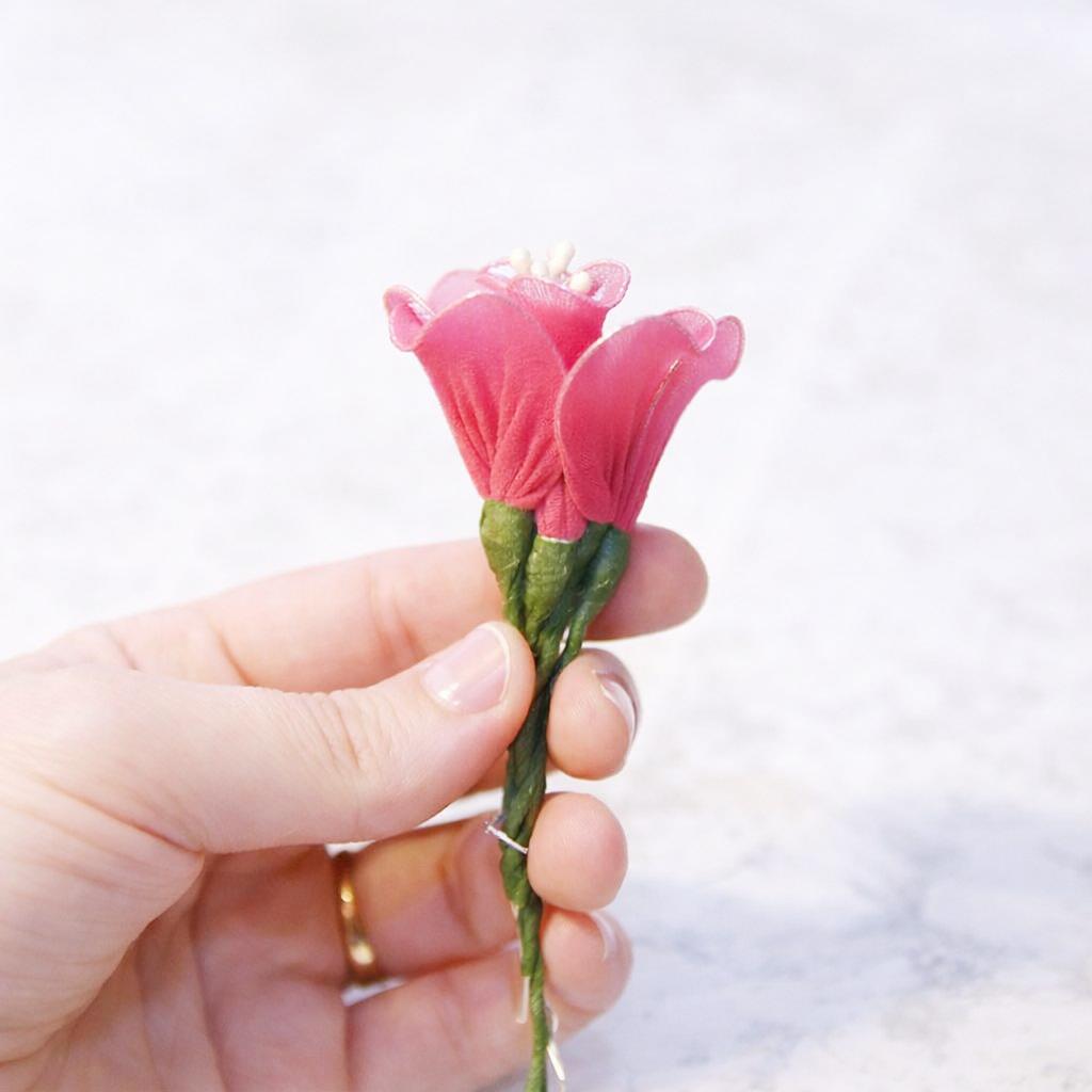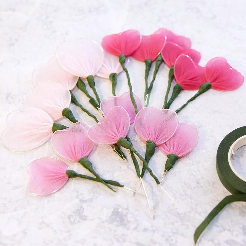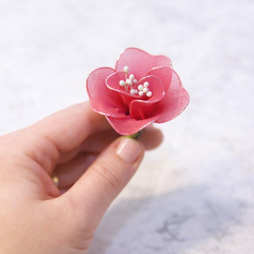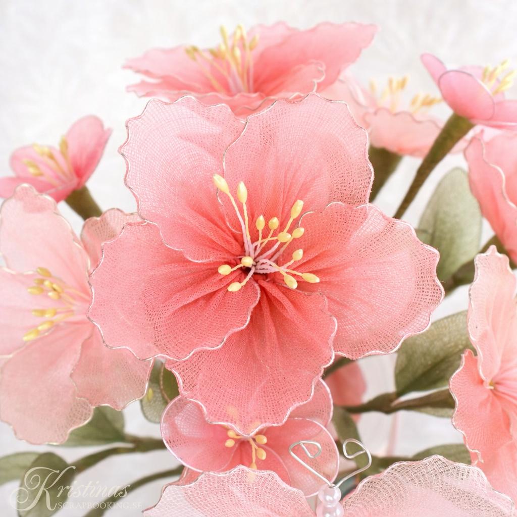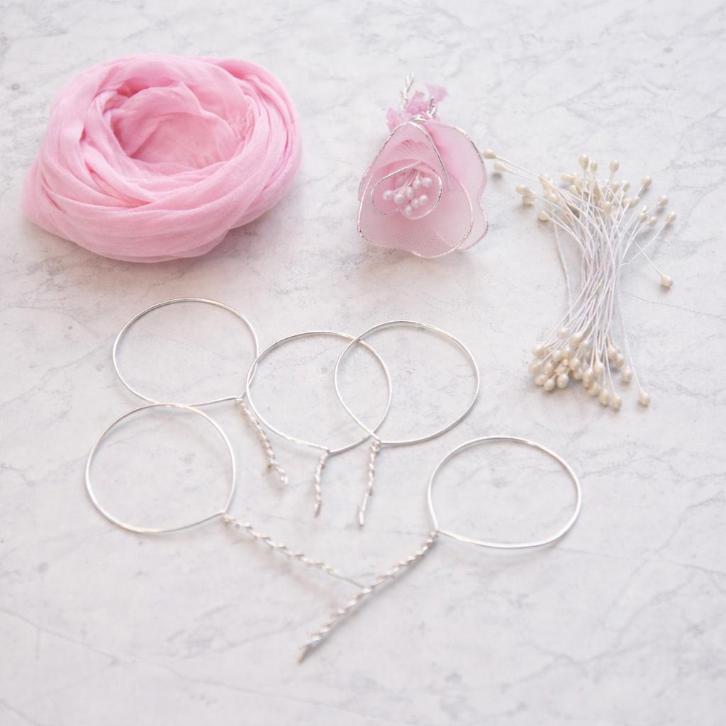 Blomman består av tre rosa nyanser nylontyg; ljusrosa 131, rosa 111 och cyklamen 142.