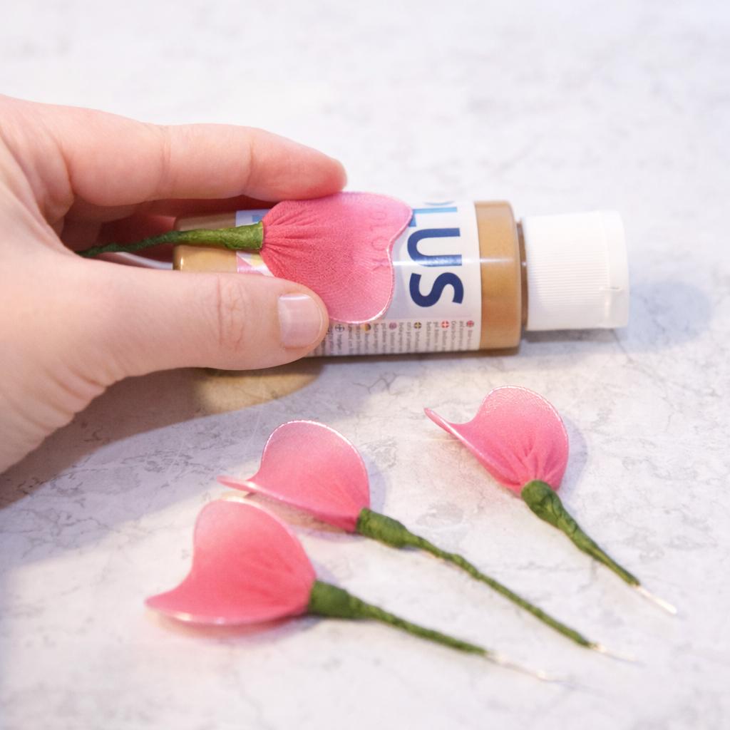 9. Efterhand som blomman växer, vinkla blombladen lätt utåt för ett naturligt uttryck. Använd gärna mörkare rosa nyans i mitten och arbeta dig utåt med ljusare toner.