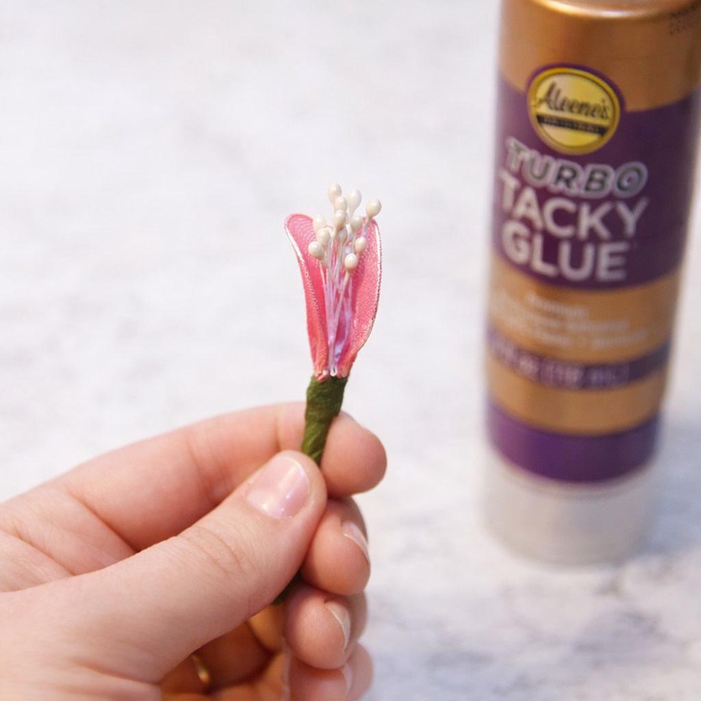 7. Limma fast pistiller mellan de två innersta blombladen för att skapa blommans mitt.