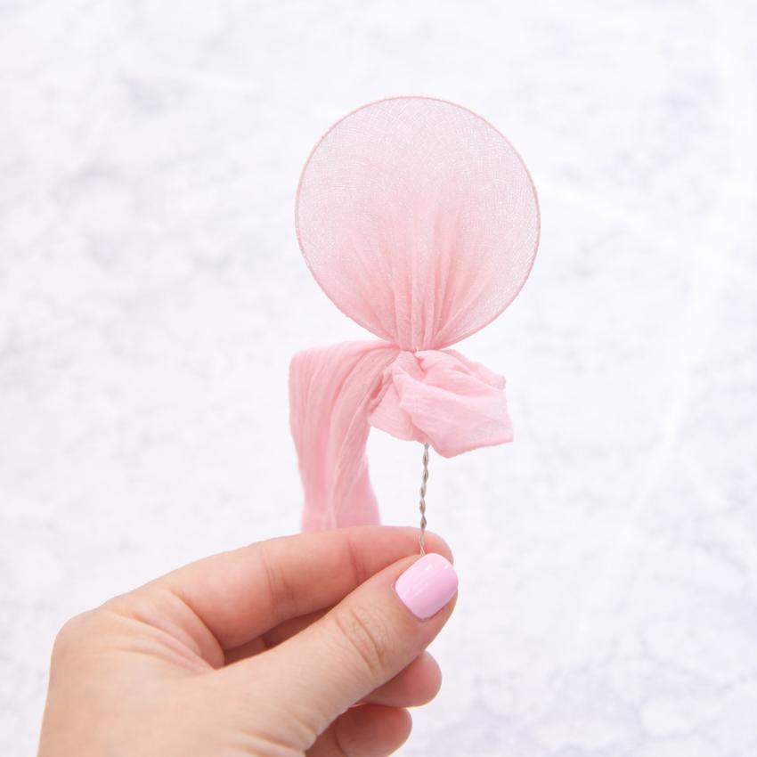 2. Klä stommen med nylontyg. Vira fast änden med sytråd.