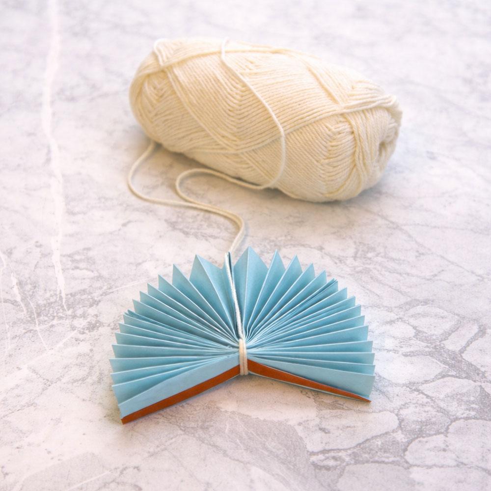 Innan jag limmade ihop de sista delarna, knöt jag ett snöre runt mitten av rosetten för att hålla allt på plats. Jag lät ändarna sticka ut en bra bit från rosetten. (Dessa ändar används sedan för att hänga upp rosetterna.)