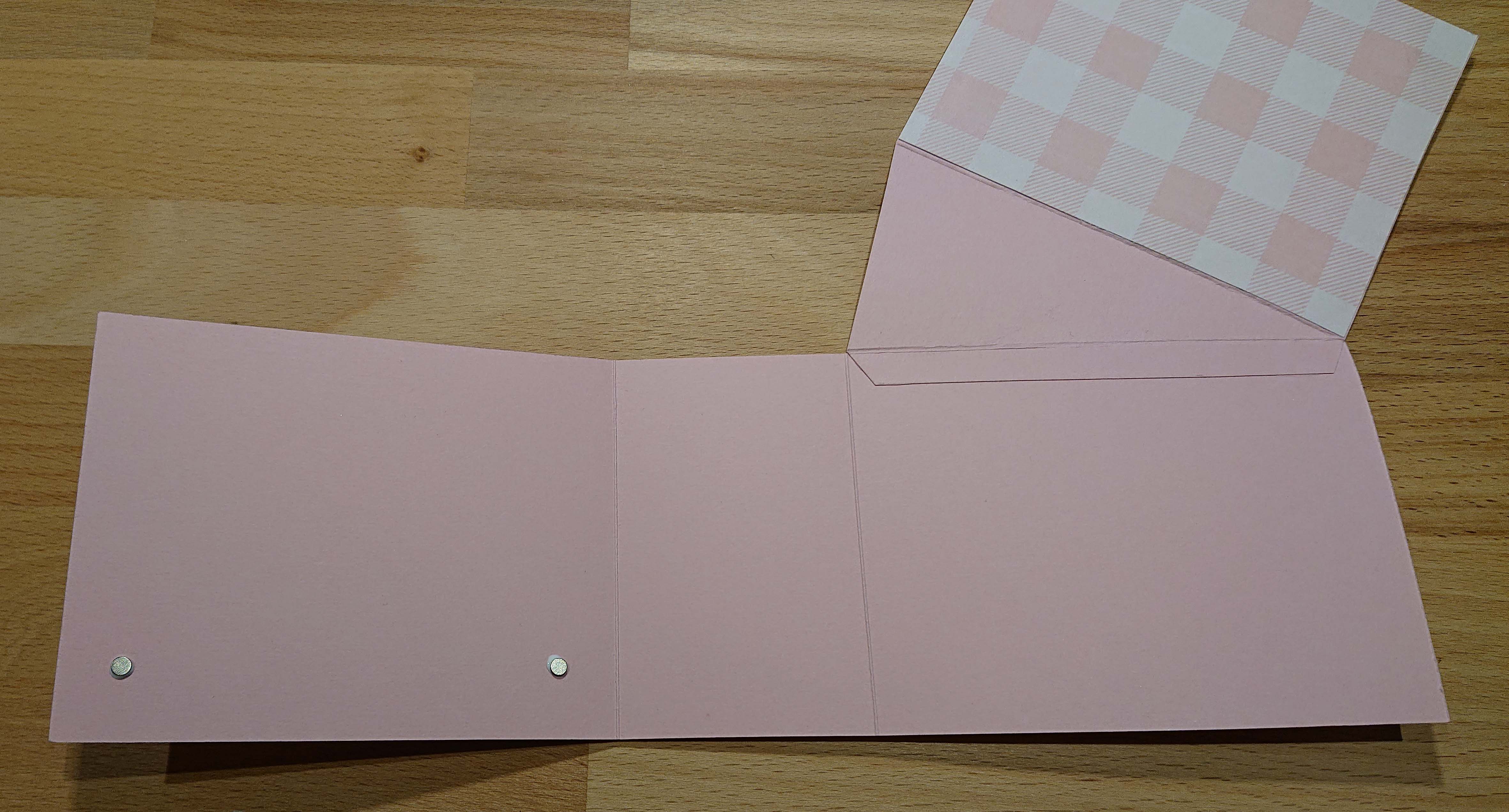 Jag limmade dit ena sidan först och sedan tog jag lim längst ner och på andra sidan så att det blev en ficka när jag veck ihop bladet.