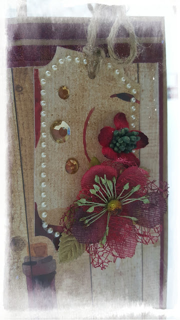 Tagen är utskuren med en die ur privata gömmor och dekorerad med vackra, matchande blommor från Petaloo, läckra pearl stripes och blingiga rhinestones.
