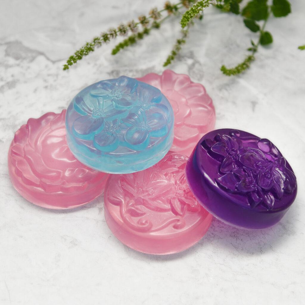 Tvålmassa ”melt and pour” innebär att tvålbasen är förberedd och färdig att smälta och hälla upp i formar. Tillsätt doft och färg när hela tvålmassan har smält i vattenbad. Melt and pour är ett enkelt sätt att göra egen tvål hemma.