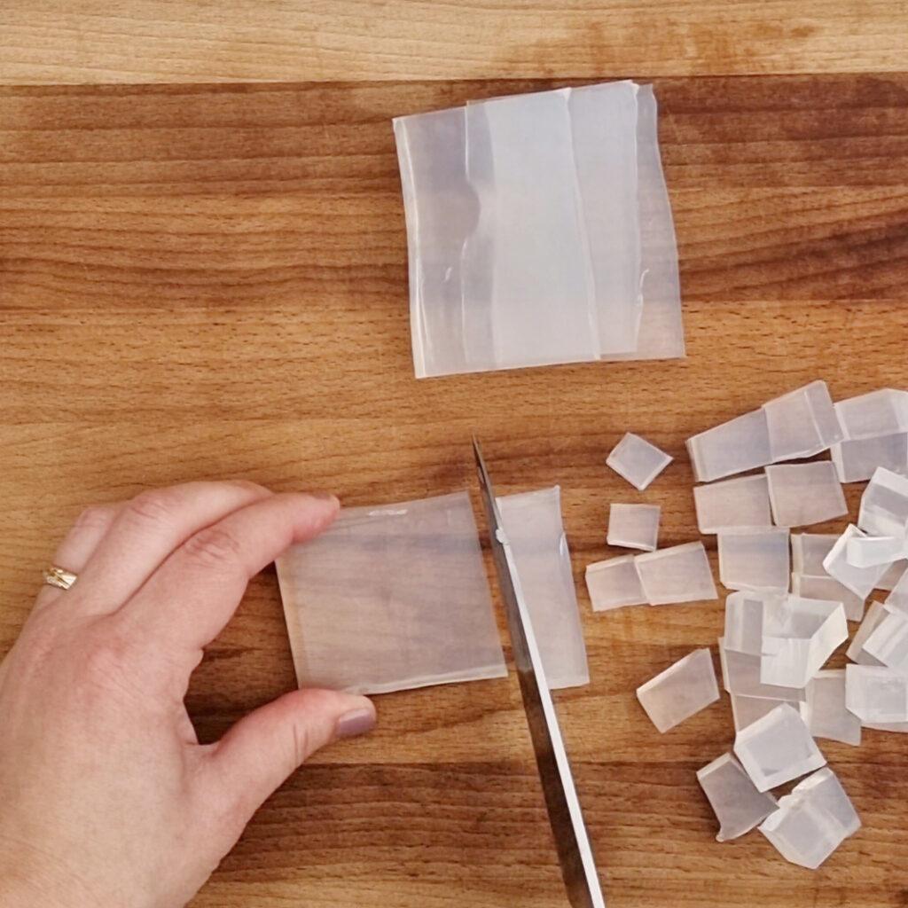 1. Tärna tvålmassan i mindre bitar, så smälter de snabbt och jämnt.